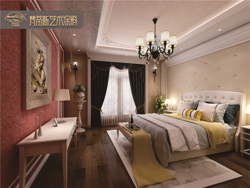 2、絲綢質感。絲綢般的質感打造浮光掠影的墻面效果,讓墻面如金緞流蘇般精致細膩。