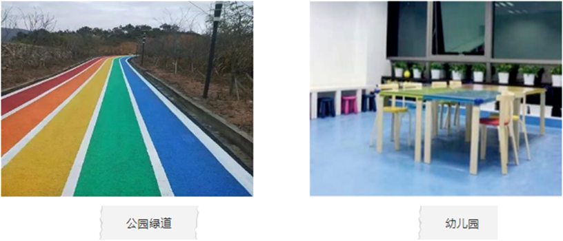 單組份丙烯酸地坪漆適用于室內外環境,如:公園綠道、屋面平臺、球場、兒童樂園、幼兒園活動場、人行通道、社區游樂場等地面色彩裝飾與翻新保護。