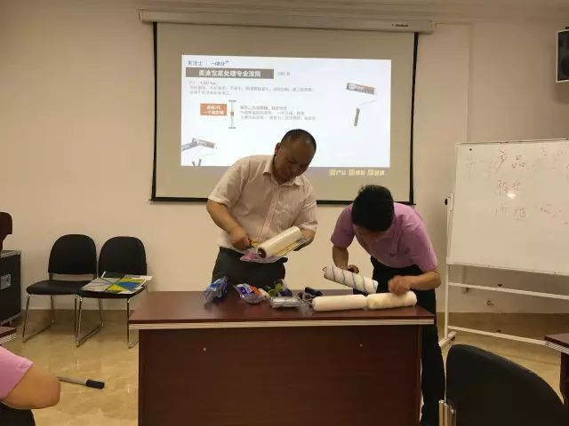 學員體驗公司基輔材、防水等產(chǎn)品,從實操中體驗產(chǎn)品的特性及學會使用。