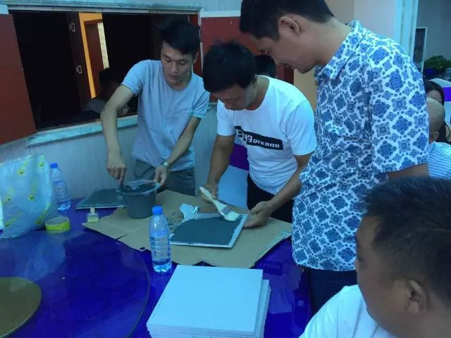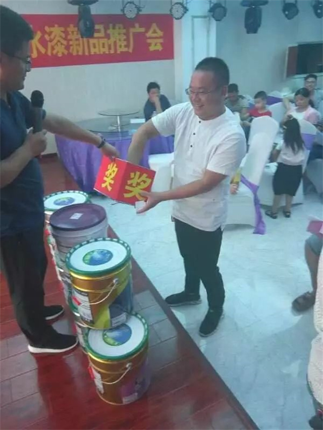 除此之外,劉經理還給現場師傅介紹了嘉麗士藝術水漆的新品,從產品的包裝到產品的特性,無一不對外宣揚嘉麗士藝術水漆健康環保的家裝理念。