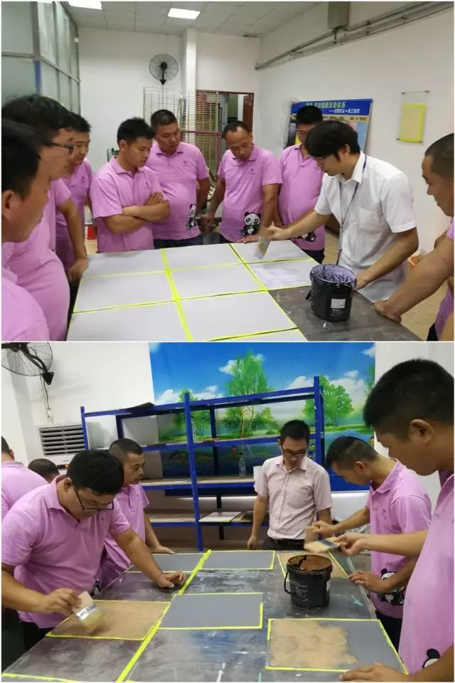 除了藝術(shù)漆的施工培訓(xùn)外,嘉麗士事業(yè)部還安排了水性木器漆施工培訓(xùn)以及墻面涂裝一體化的施工培訓(xùn)。水性木器漆是緊跟著墻面水漆市場(chǎng)變化最大的涂裝產(chǎn)品,油改水的必然趨勢(shì)促使著水性木器漆的大力發(fā)展。嘉麗士藝術(shù)水漆高瞻遠(yuǎn)矚,在推出水性木器漆的同時(shí),也培養(yǎng)著施工服務(wù)人員,因?yàn)椋褐挥袑?zhuān)業(yè)才能贏得市場(chǎng)!