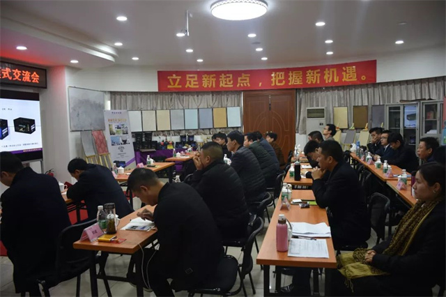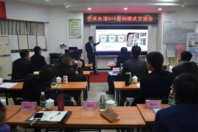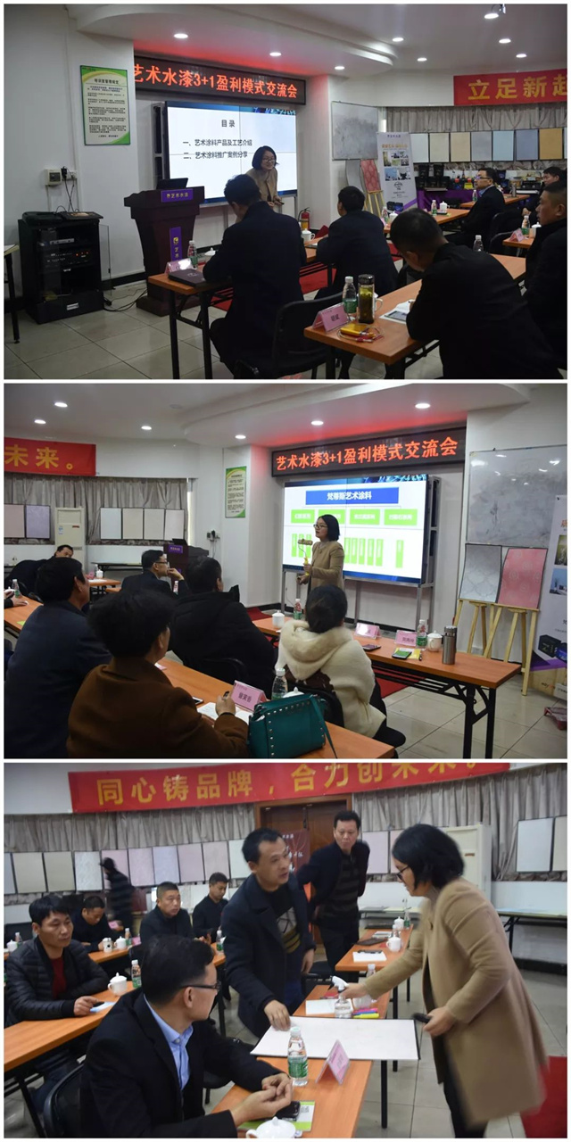 隨后,藝術(shù)涂料服務(wù)部將部長(zhǎng)給大家闡述了《梵蒂斯藝術(shù)涂料產(chǎn)品介紹及推廣》課題,看著個(gè)性十足、藝術(shù)質(zhì)感的樣板,在座各位興致滿滿,不停地向蔣部長(zhǎng)提問,甚至一度推遲了會(huì)議的時(shí)間。
