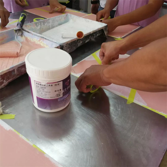 底漆施工、基礎漆施工、刷涂施工、中涂施工、印花擦色、色塊效果等等,逐一講解并演示,并且讓學員現場實操。