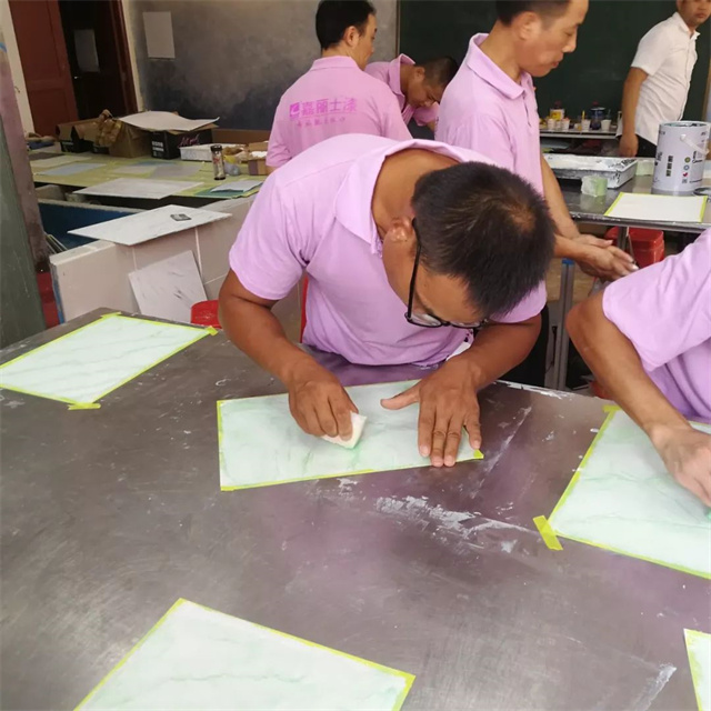 實操過程更是令學員受益匪淺,老師把施工要點、使用工具和施工手法等詳細講解,一邊講解一邊示范。在老師們富于耐心又不失幽默詼諧的教學風格的帶動下,整個藝術漆培訓課堂氣氛輕松活躍,一下子就點燃了學員們學習的熱情。
