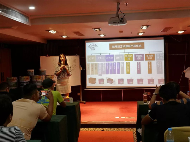在萬眾期待中,陳秋汝總監向大家進行了梵蒂斯藝術漆的產品介紹,并就施工要求、涂裝操作、門店運營技巧、色彩搭配等方面知識,進行了全方位的指導,給學員帶來了實際性幫助。