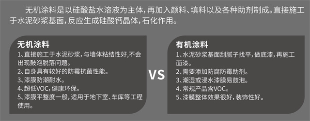 相對(duì)于常見的有機(jī)涂料,無機(jī)涂料具有:天然無污染,壽命長(zhǎng),顏色保色持久,附著性能強(qiáng),不易龜裂、起泡、脫落,透氣性良好,防火阻燃,易清潔,能夠有效抵御苔蘚、真菌滋生等優(yōu)點(diǎn)。