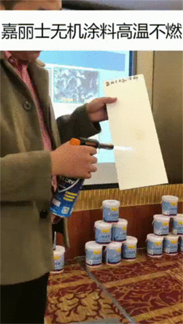 本次上市的嘉麗士天然礦物無機(jī)涂料,尤以抗菌與防火特性突出。現(xiàn)場(chǎng)使用高溫噴槍,通過實(shí)驗(yàn)對(duì)比我們可以看出,無機(jī)涂料漆膜無影響,而普通乳膠漆已經(jīng)燃燒發(fā)黑粉化,可看出無機(jī)涂料的防火性能遠(yuǎn)遠(yuǎn)高于乳膠漆,且還有阻燃的功能。