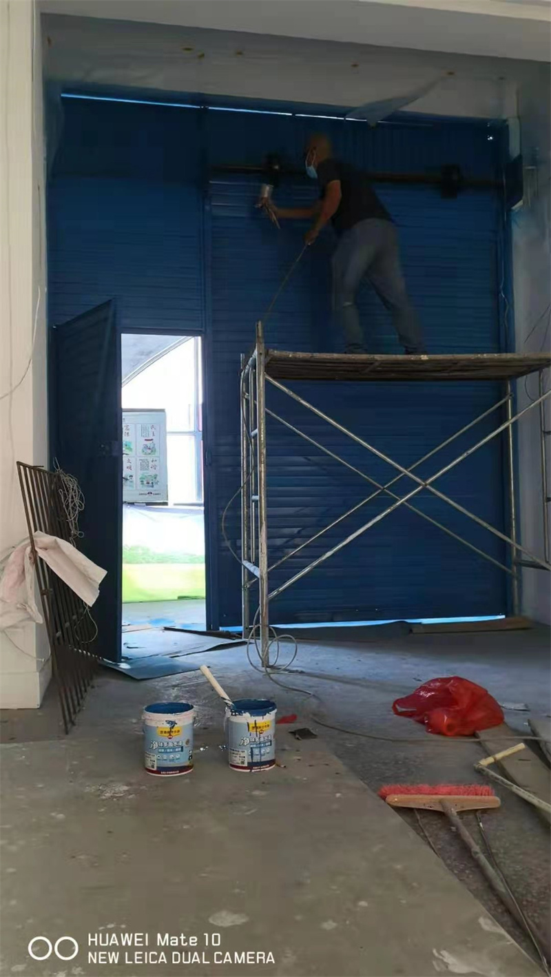 卷簾門翻新,噴涂嘉麗士凈味多面水漆中藍色效果。