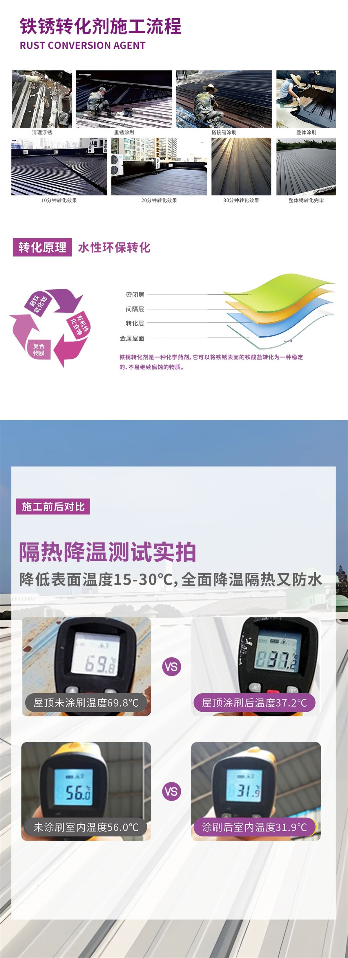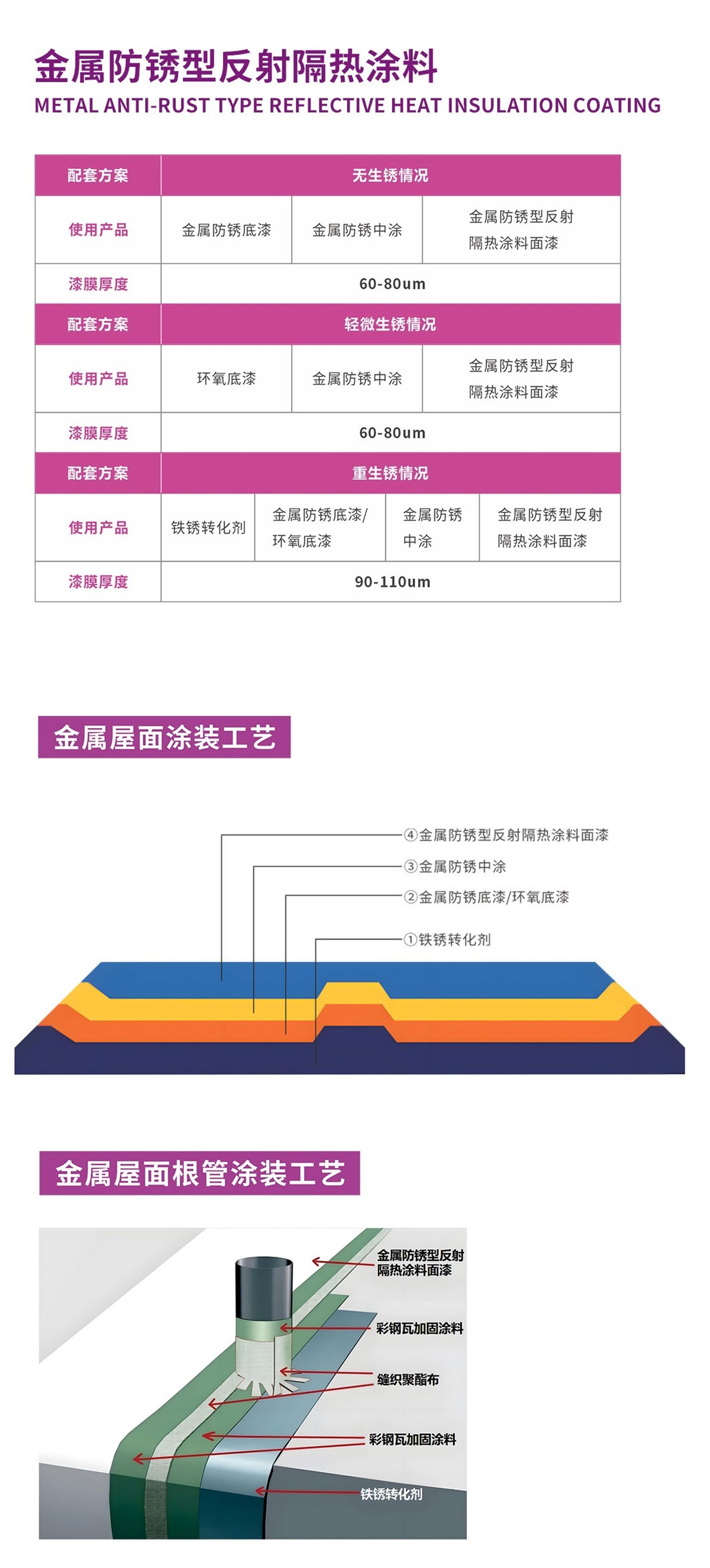 3、解決問題:廠房彩鋼瓦金屬屋面防腐、防銹、翻新、隔熱。
