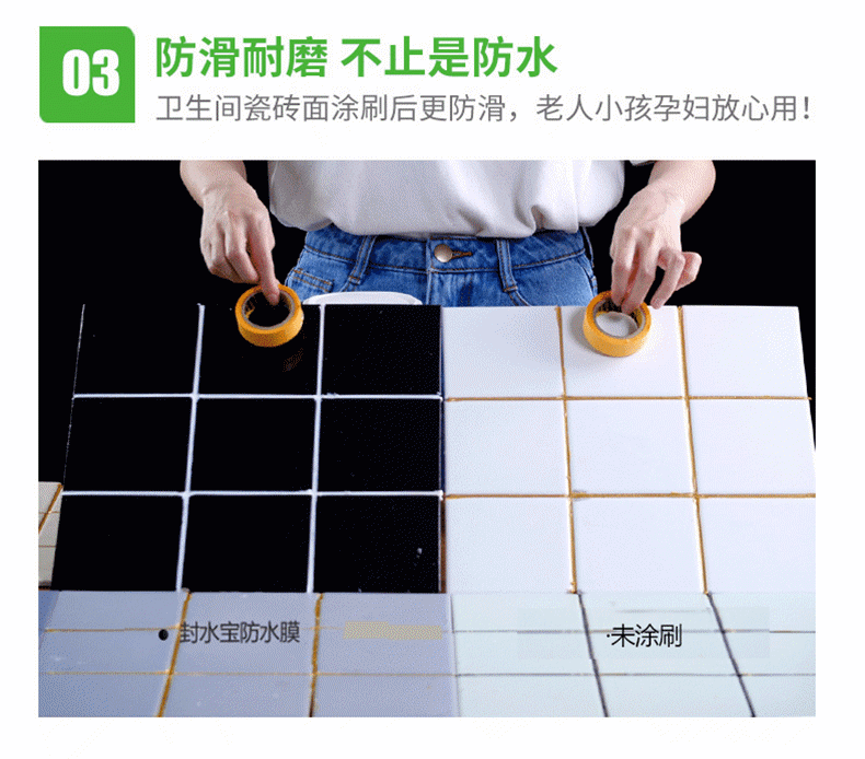 封水寶免砸磚強效耐候防水膜,可用于瓷磚、石材、混凝土等多種材質的防水防滑處理。同時對外墻老化瓷磚,可進行加固防止滲水空鼓脫落作用。