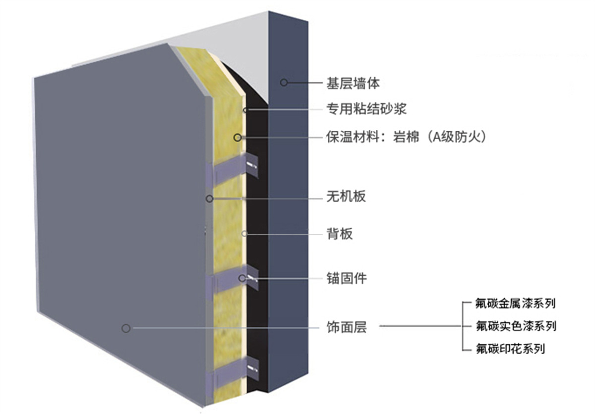 氟碳漆飾面分為氟碳實色漆飾面、氟碳金屬漆飾面。 氟碳實色飾面具有超強的分子結構,使氟碳實色飾面具有優異的耐候性、保光保色性、防腐蝕性、耐化學品性等性能,其具有使用年限長、綜合性能優的特點。